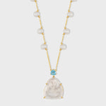Happy Buddha Rainbow Moonstone Topaz Crown Pearl Necklace