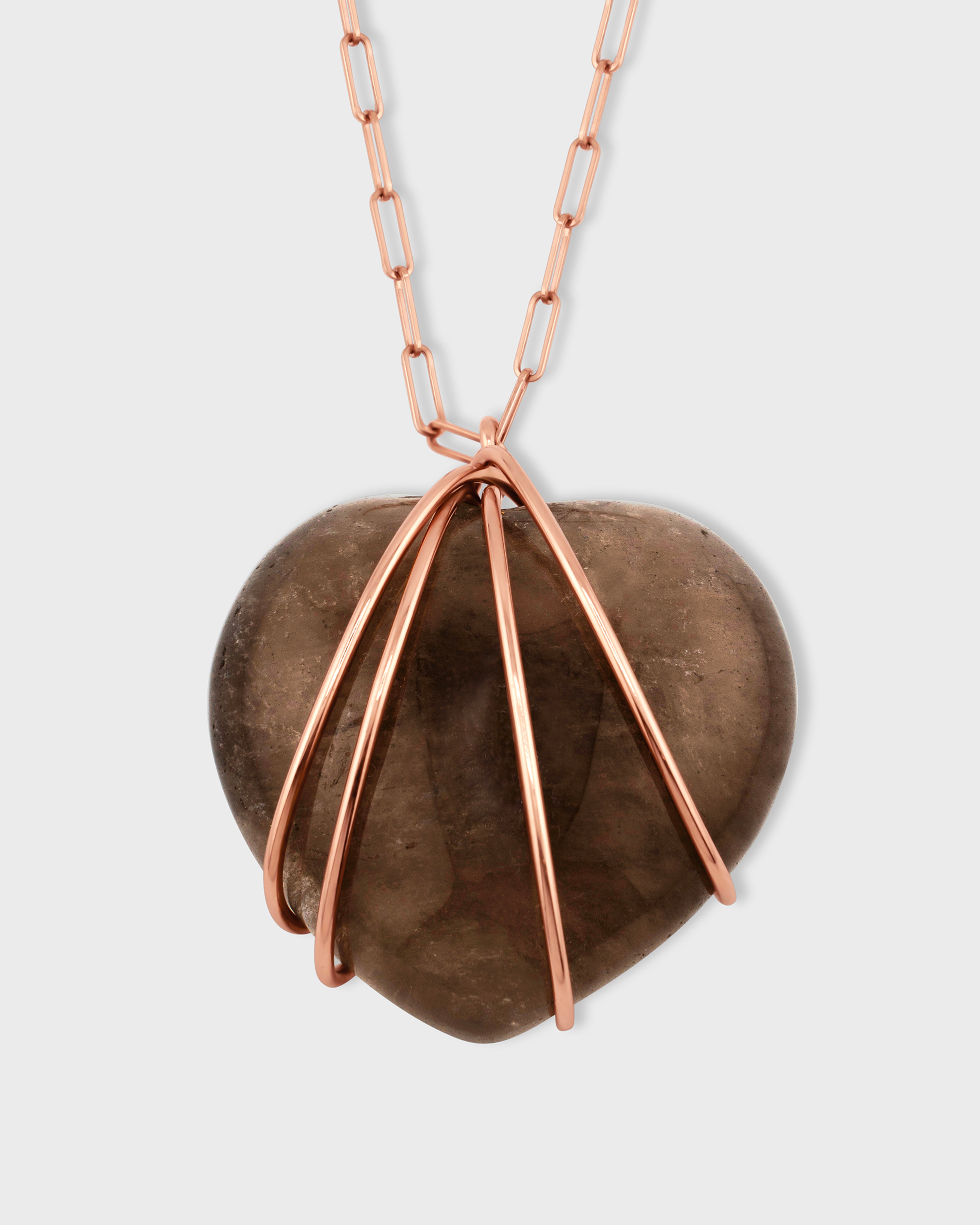 Our one of a kind signature Smoky Quartz polished heart is hand wrapped with love in 14 karat solid gold.