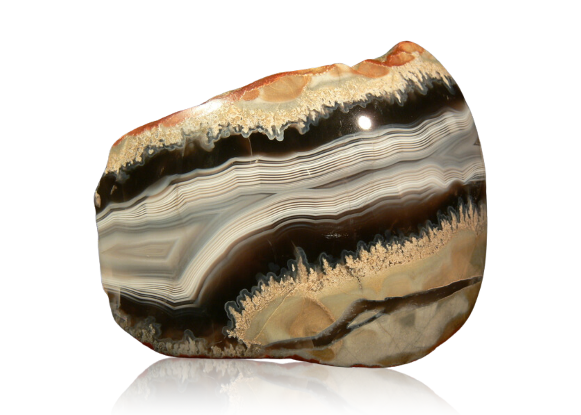 Onyx is a variety of microcrystalline quartz with bands varying from black to reddish brown to white. Ancient Romans carried amulets of black onyx engraved with images of gods Mars or Cupid, believing it imparted courage, strength and stamina.