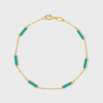 This delicate piece showcases a 14k gold setting for lasting luxury, featuring rectangular turquoise inlays that adds a vibrant pop of color.