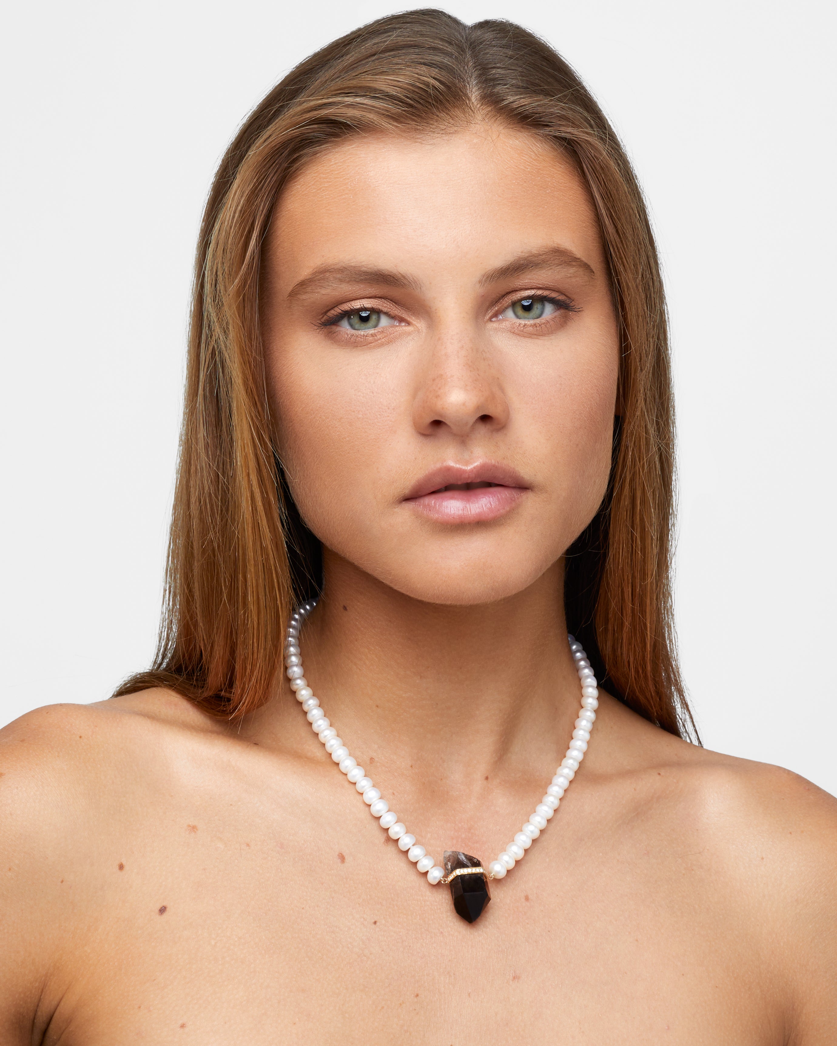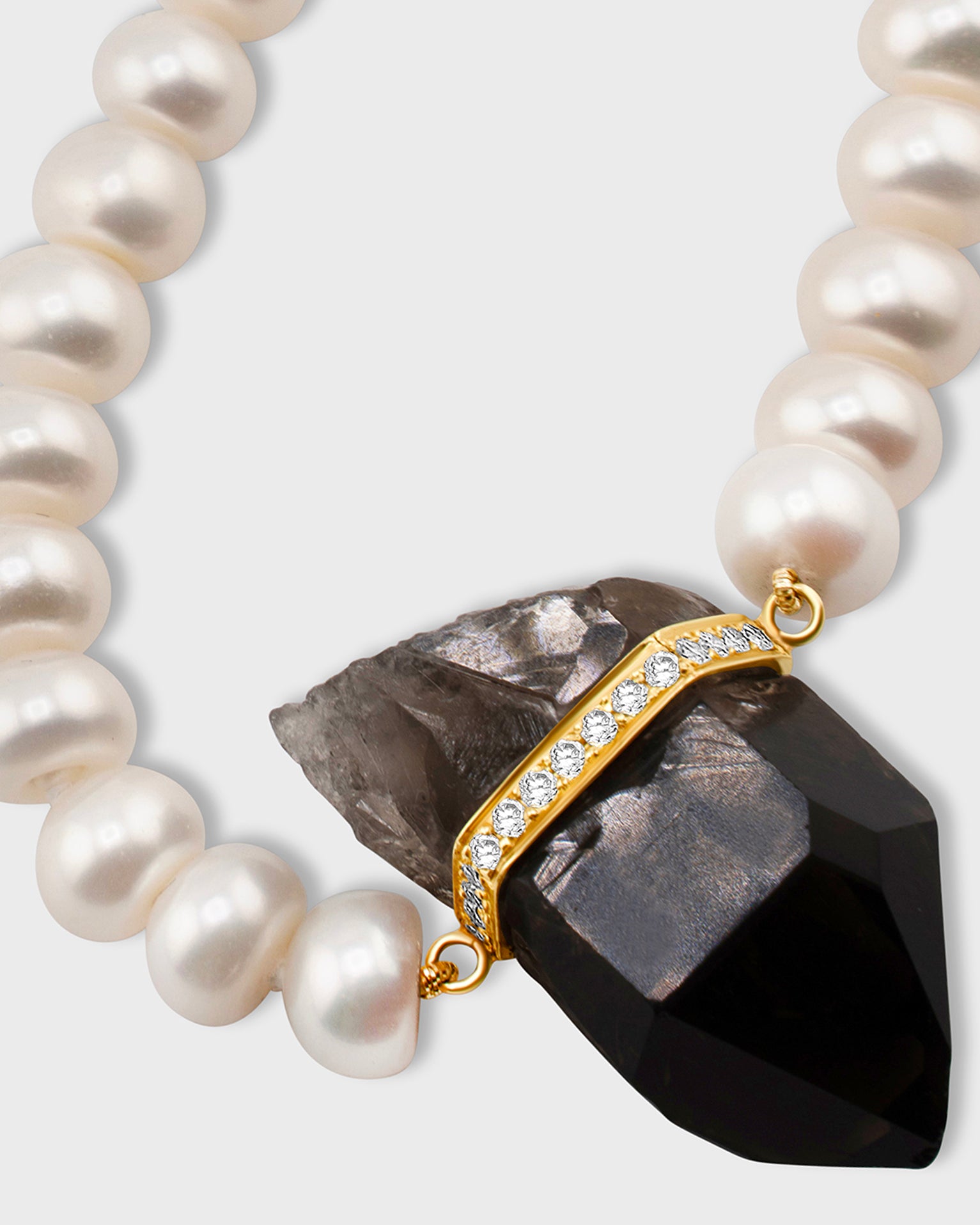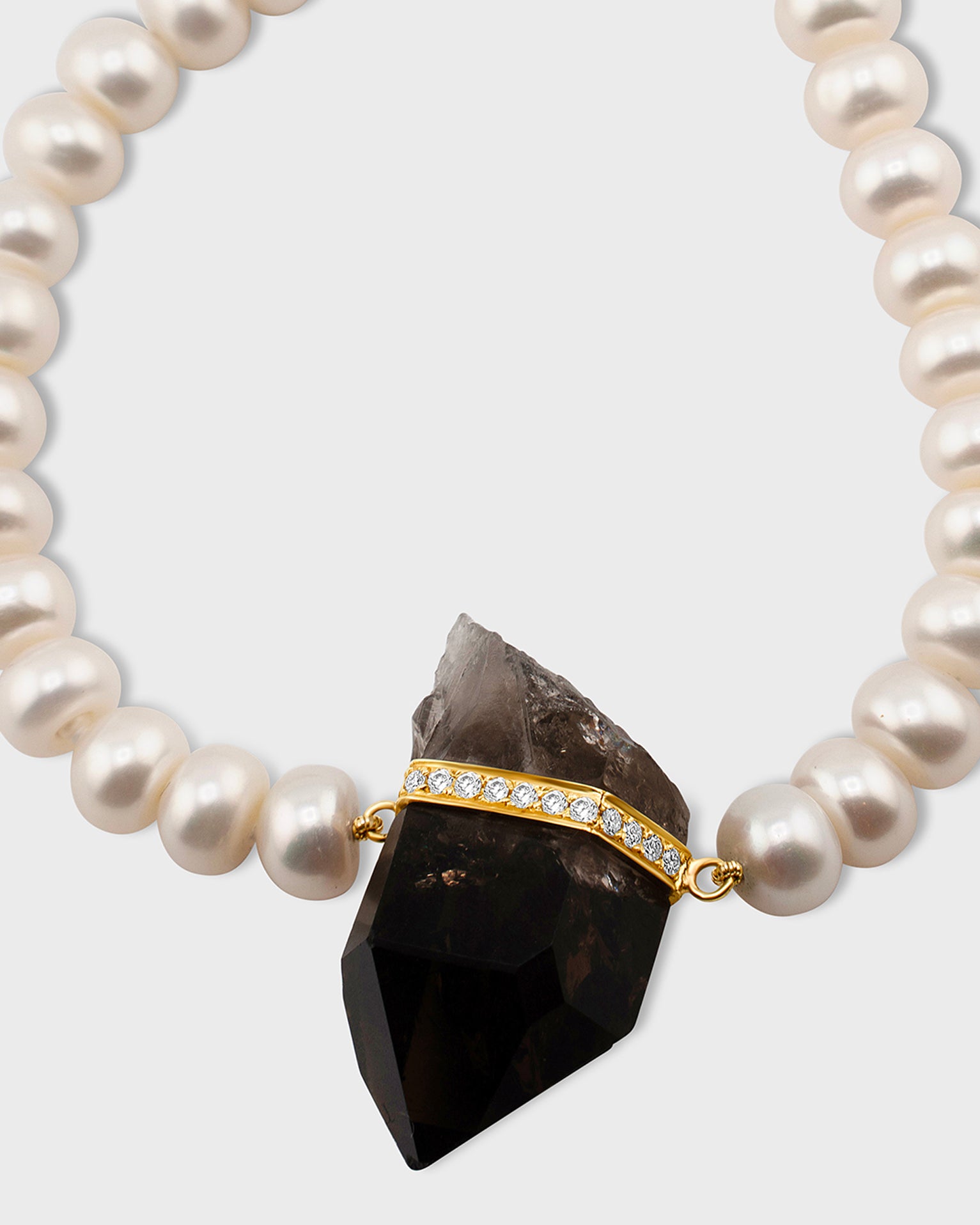 Ocean Jumbo Diamond Smoky Quartz Pearl Necklace