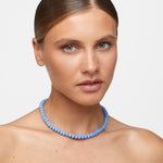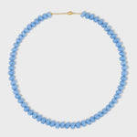Periwinkle aragonite crystal beads hand strung in the heart of New York City and finished with 14 karat yellow gold.