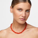 Featuring vibrant red-orange carnelian beads, this necklace exudes warmth and energy. Perfect for enhancing vitality and personal power, its smooth, polished surface gives it a sleek, modern look.