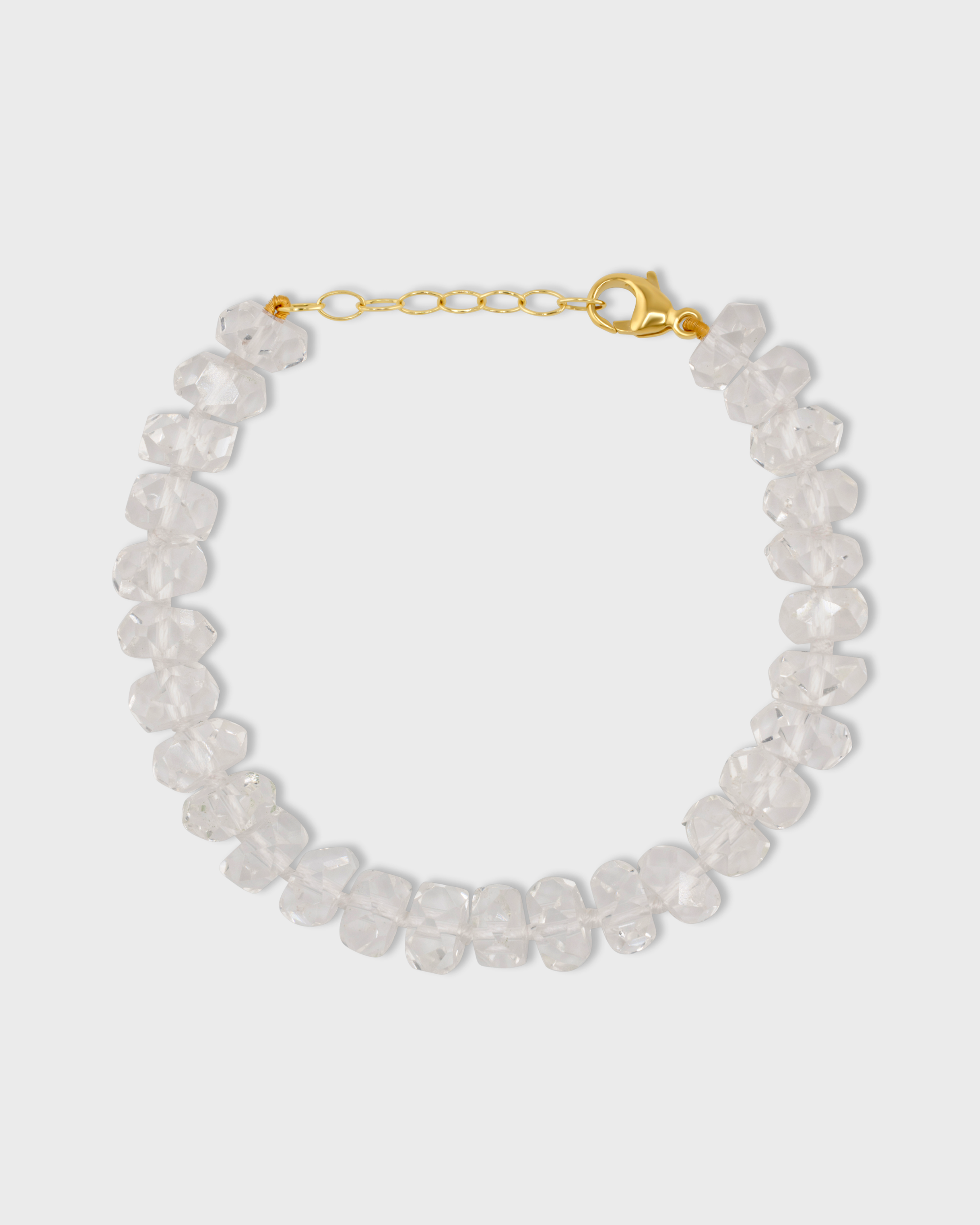 A complete crystal quartz crystal bracelet that is custom handset in 14 karat gold in our New York City workshop. Each crystal is one-of-a-kind with natural clarity and shapes that attune to vibrational needs of the beholder.