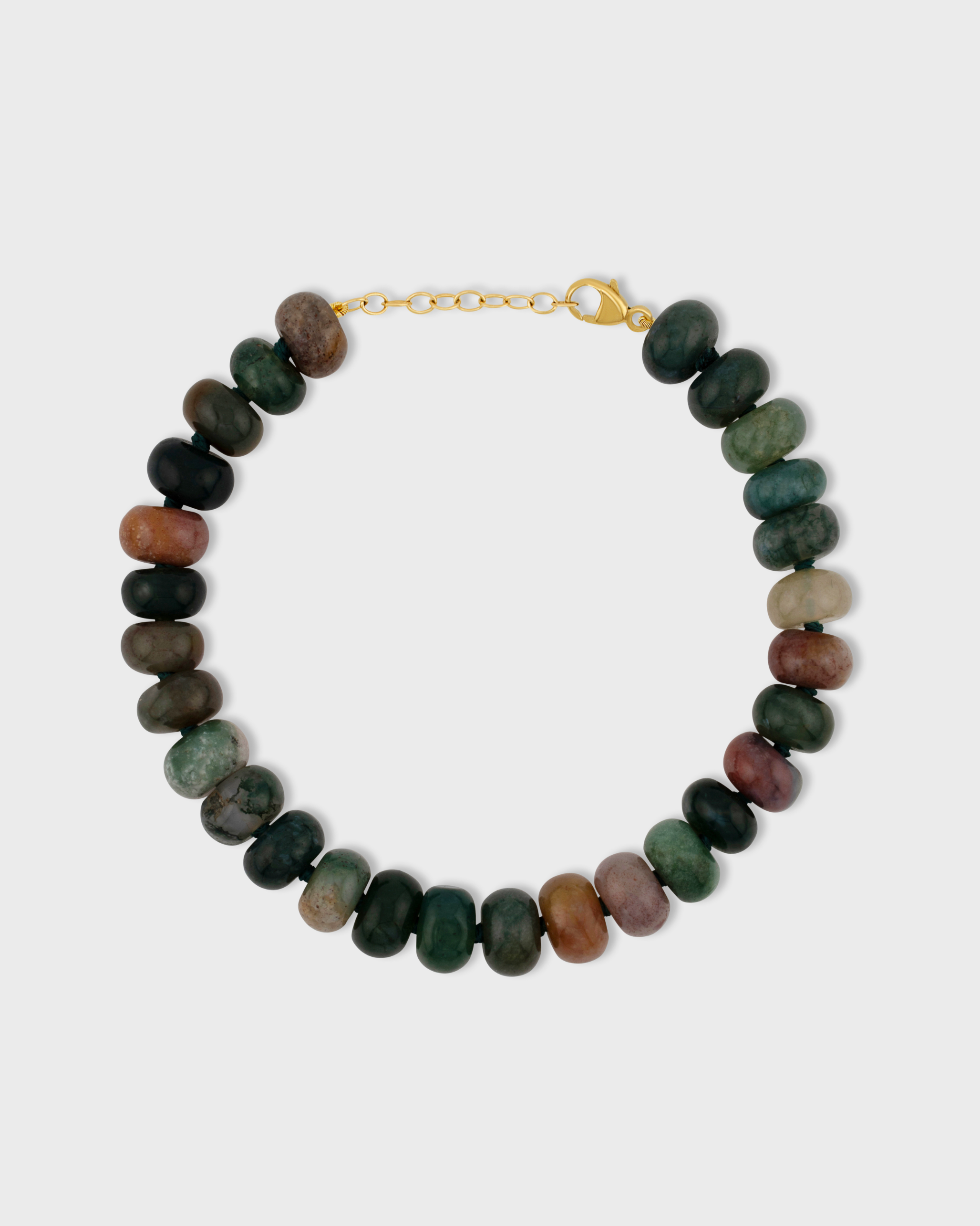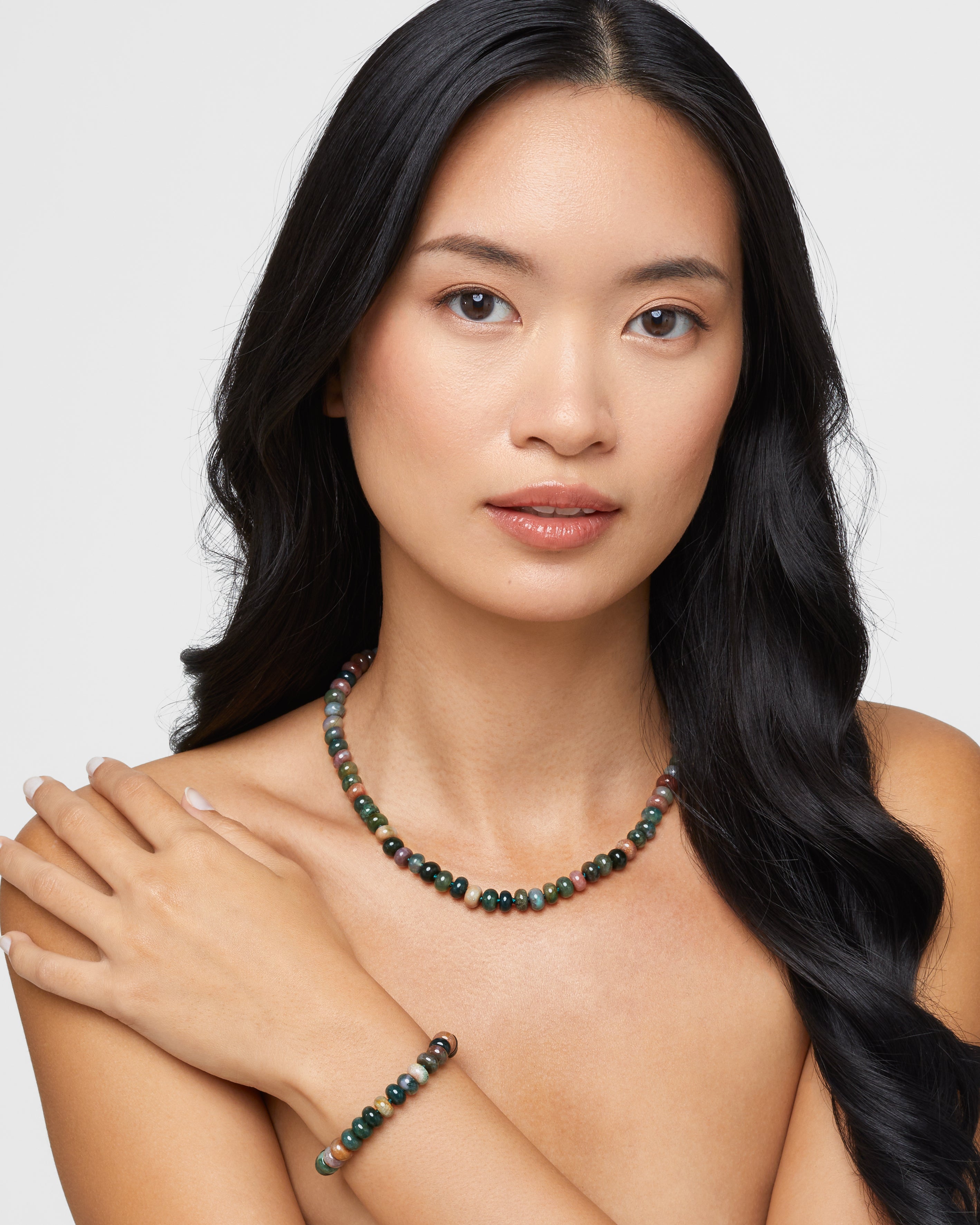 Moss Agate features deep greens that represent the nurturing and healing energy of the earth. This bracelet offers a strong, grounding presence, perfect for spiritual growth and renewal.