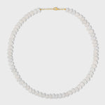 Rainbow moonstones hand strung in the heart of New York City and finished with 14 karat yellow gold.