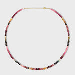 A vibrant strand of natural watermelon tourmaline beads, this necklace celebrates the full spectrum of color found in nature. Hand-strung and finished in 14k gold, it’s a radiant, everyday talisman of beauty and harmony.