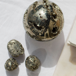 Pyrite is also known as fool's gold because of its radiant gold color. It is hand-cut and polished into the shape of a sphere and comes with a lucite stand. This is a beautiful piece to layer into your home. Pyrite symbolizes the power of strength and protection. Each one is natural and unique in its own way.