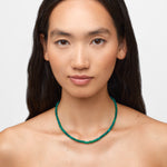 Bright emerald opals hand strung in the heart of New York City and finished with 14 karat yellow gold.