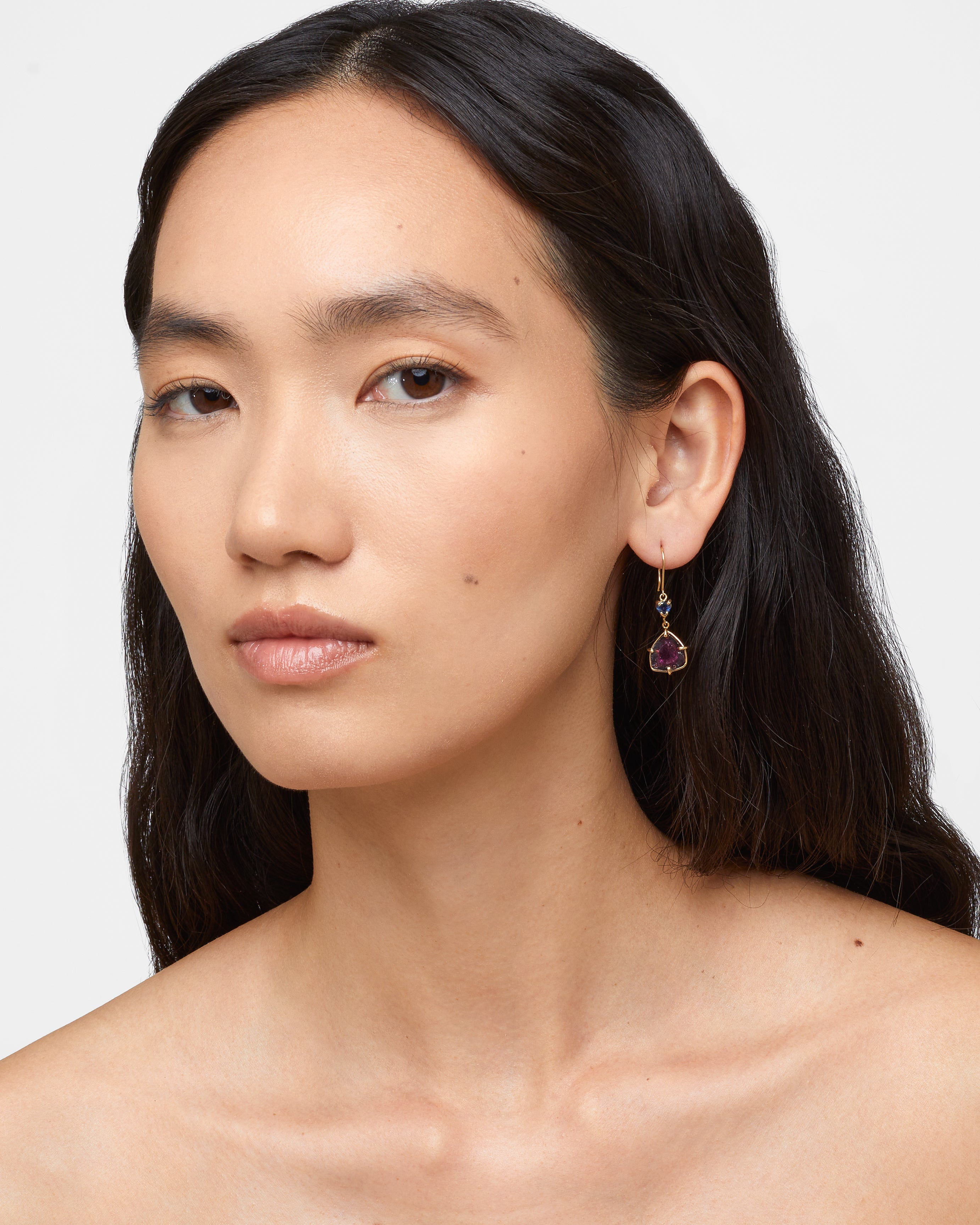 Treasure Pink Tourmaline Slice Sapphire Heart Earrings